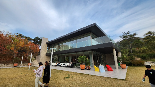 2층 아담원 갤러리로 올라오니 잔디 마당이 넓게 펼쳐집니다.