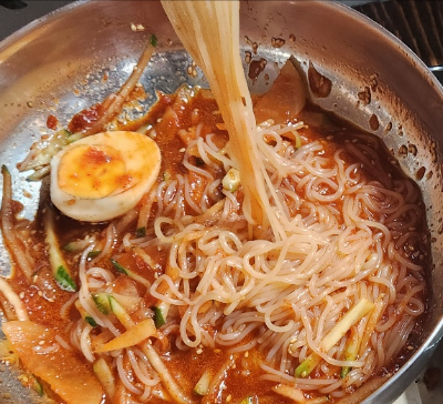 먼저 음미하시고 비빔밀면은 새콤달콤한 양념을 잘 섞은 후