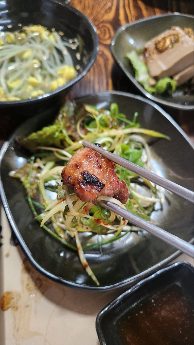 주나 참숯불갈비는 염통 꼬지가 서비스로 나옵니다.