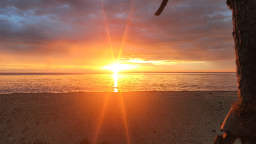 아침에 누워서 일출을 감상했습니다.
