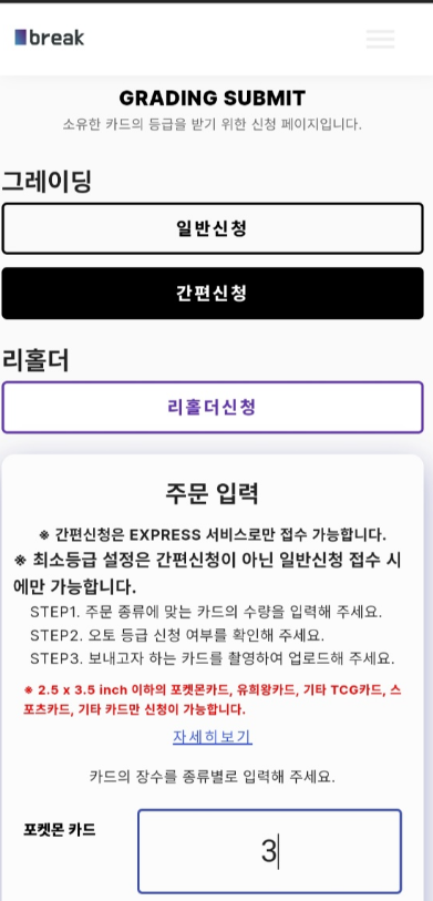 인증받을 카드 수량을 입력한다.
