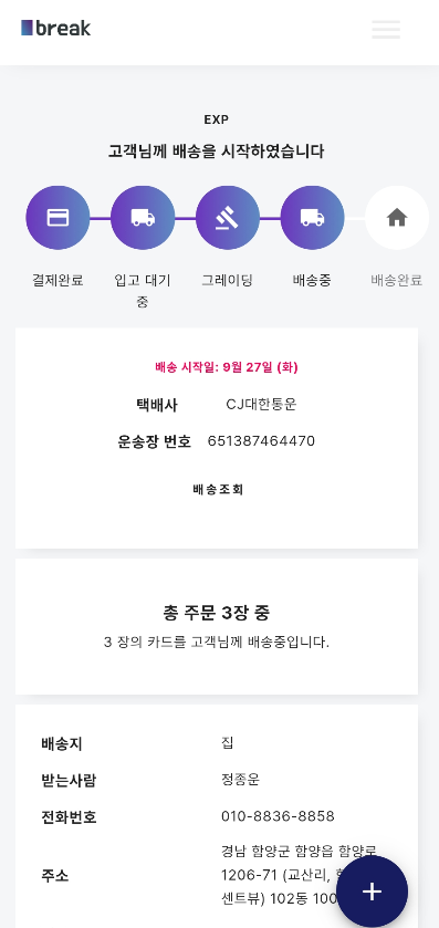 카드가 입고가 확인되면